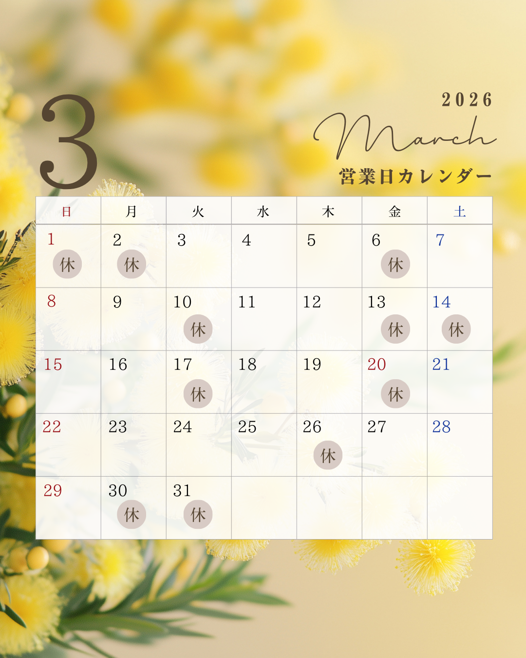 2026-02-20 新着情報 3月の定休日 3月の定休日のお知らせです。空き状況は、ご予約ページからご確認ください。【ご予約はこちら】https://fairyland.pos-s.net/reserve/